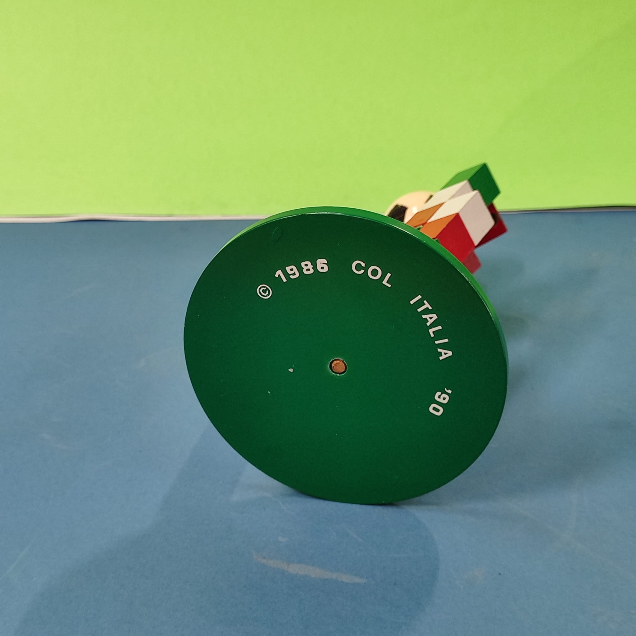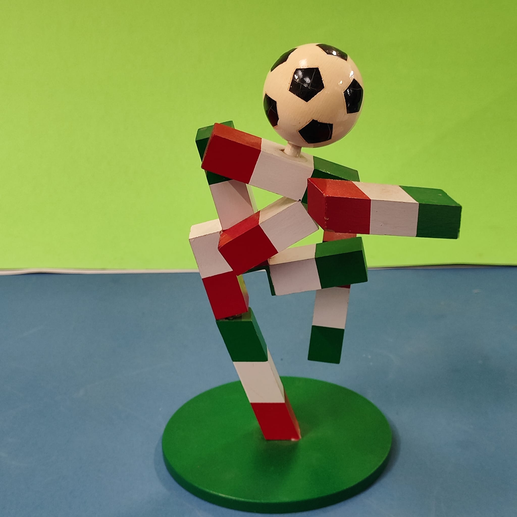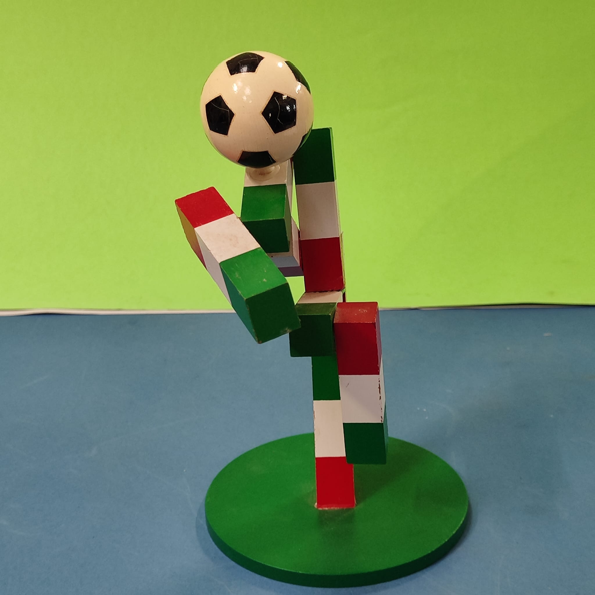 Mascotte dei mondiali di calcio anni 90 in legno. In buone condizioni, presenta segni del tempo. Dimensioni: diametro base 11 altezza 22