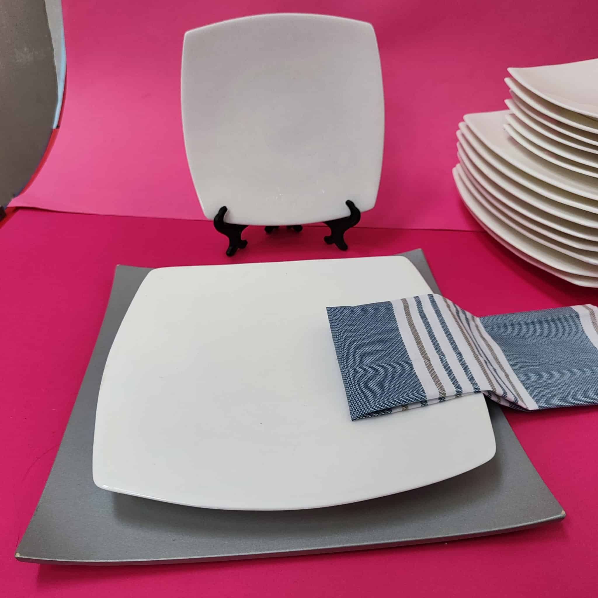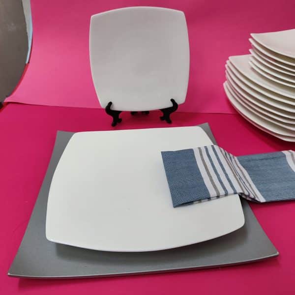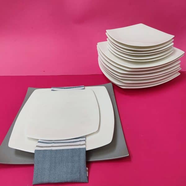 Piatto piano quadrato in porcellana Bone China Richard Ginori modello Vela. In condizioni perfette, dimensioni 27 x 27. Disponibilità di nove piatti piani