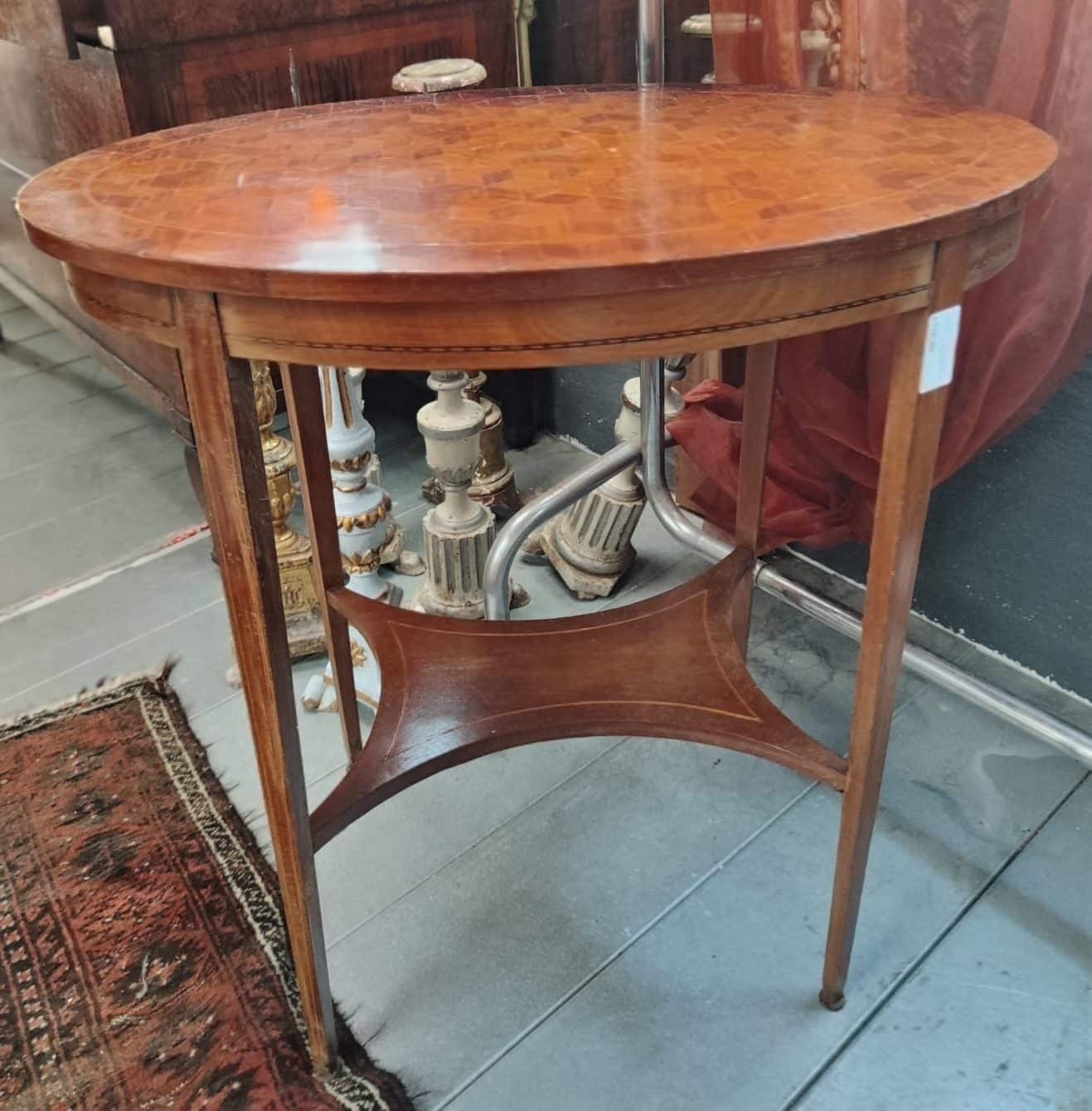 Raffinato tavolino da salotto ovale di manifattura Inglese risalente ai primi del 900.